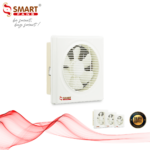 Its a one-way exhaust fan with a spring controlled shutter that opens with the assist of airflow as soon as the fan is turned on and closes when the fan is turned off.