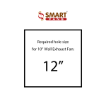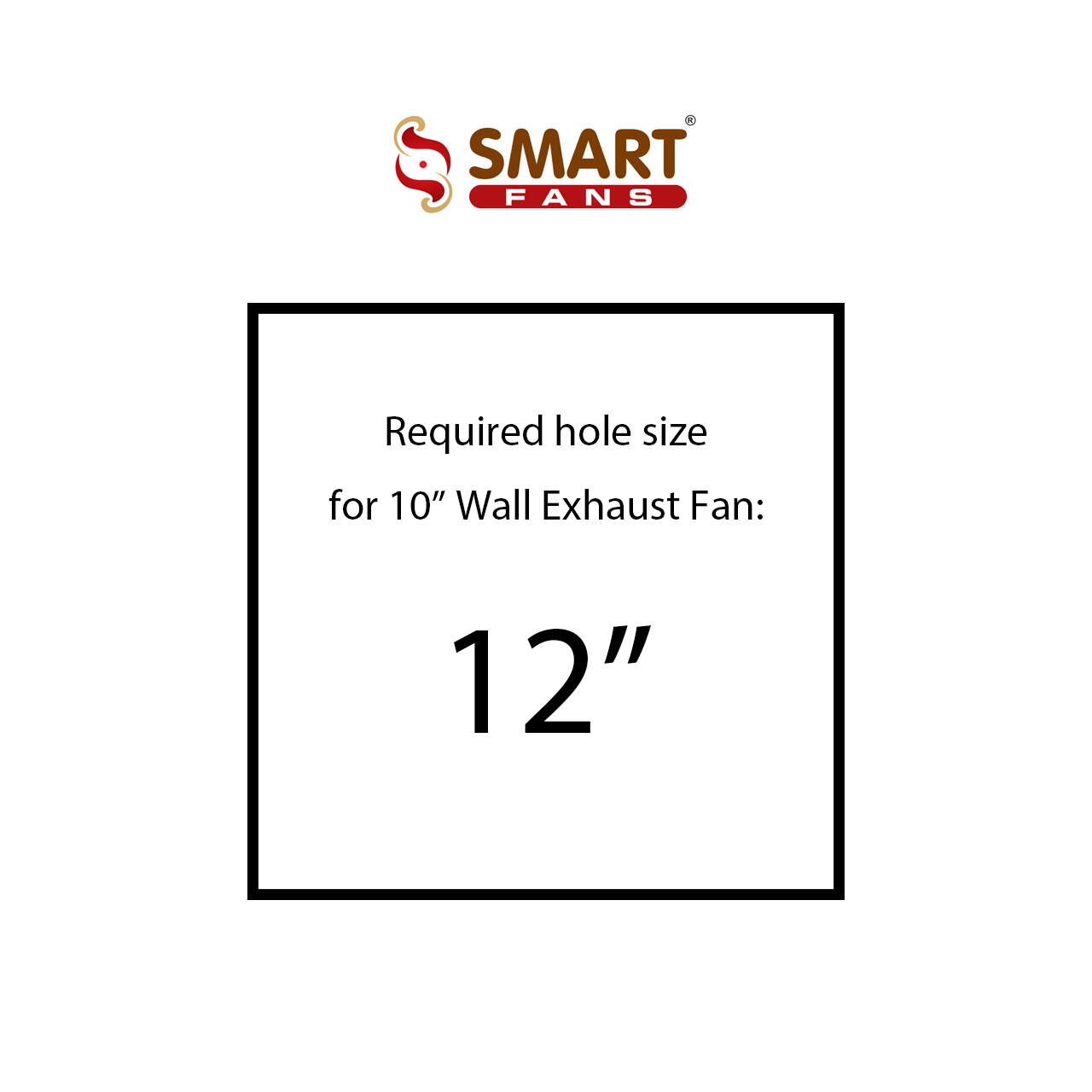 The rear size of the fan is 12″ square, so required hole size in the wall is 12″ square.